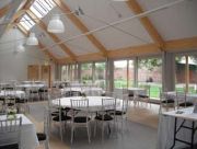 The extension to form the wedding facility was an extension to an existing listed building. It consisted of glulam trusses, which due to their size had to be constructed on site and seated on stainless steel columns. The envelope was cladded with traditional brickwork to the road elevation and sliding glazed