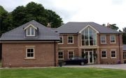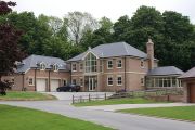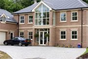 A traditional built house in brick and tile using structural steel frames in features areas. The first floor landing and master bedroom incorporated a vaulted ceiling. The rear elevation included a balcony from the master bedroom. The entrance hall is dominated by a bespoke oak staircase which leads up from the first floor landing.